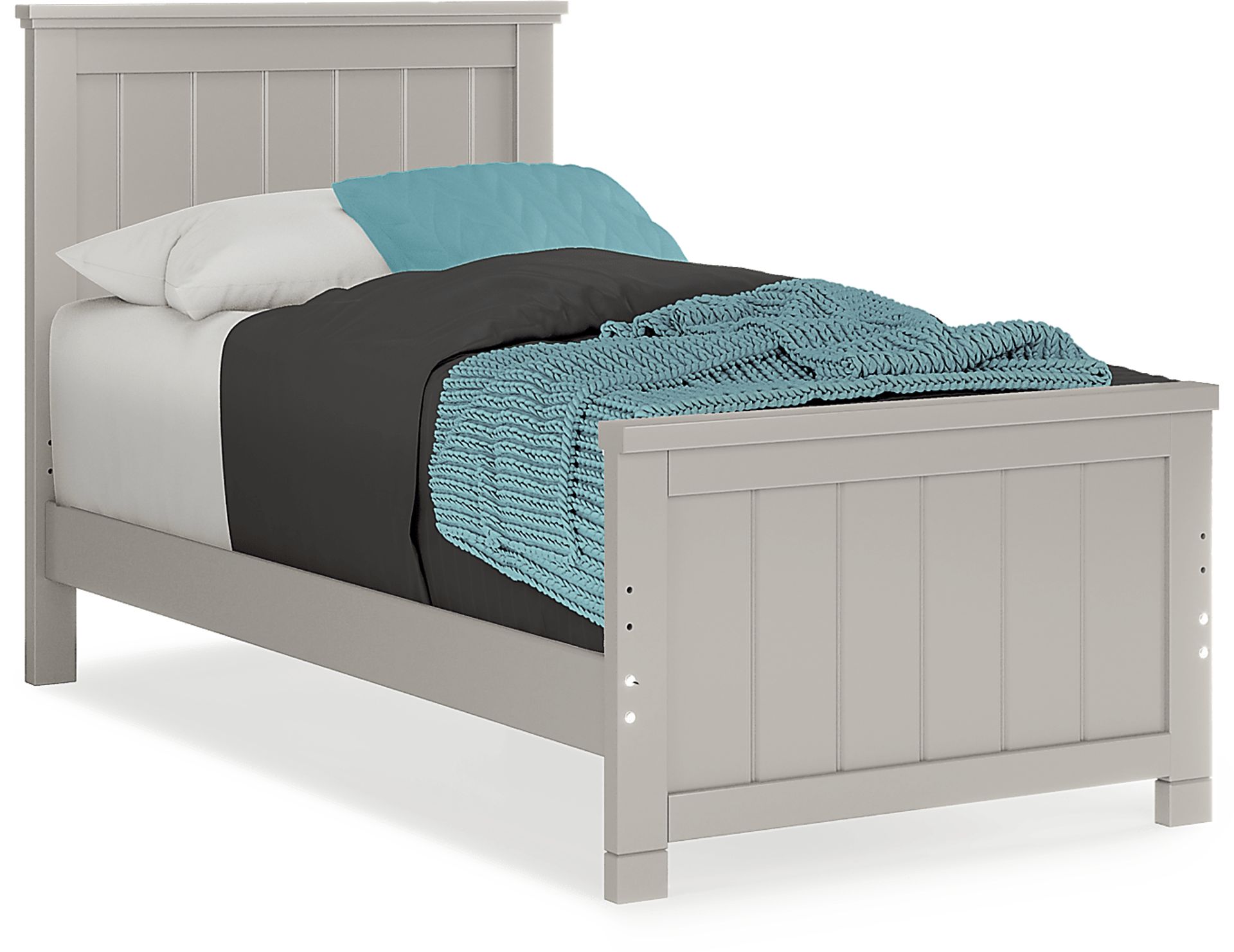 Make the most of the space in your child's bedroom with the Cottage Colors panel bed. Showcasing a gray finish, the bed is detailed with beautiful paneling details for a timeless look. A dual height rail setting offers an adjustable height, growing with your child. The matching trundle option, sold separately, offers storage space or a handy place for an extra mattress for sleepovers. Mattress and foundation (if required) sold separately.