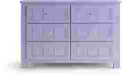 An attractive bedroom essential, the Cottage Colors dresser provides six generous drawers of storage. The piece is crafted of poplar solids with a pretty purple finish. Each drawer has paneling details and brushed nickel finished hardware with kenlin drawer guides for durability. Drawer pulls are rounded, and thanks to anti-tipping certification and curved edges, this dresser has added safety.