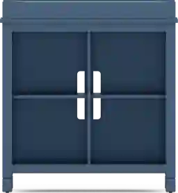 The soothing tranquility of the Cottage Colors nursery nestles your bundle of joy in adaptable comfort with a design that is built to change with the different stages in each child's development. Finished in rich navy, this crib features reinforced corner blocks and a three-height link spring. With the removal of the front rail, this crib transforms into a daybed. The crib can also be converted to a toddler bed and a full-size platform bed with the purchase of additional conversion rails. The coordinating bookcase provides shelving for books, toys, changing supplies and more. A removable changing tray completes this set. Mattress, foundation (if required) and changing pad sold separately. Toddler conversion rails and full conversion rails with slats sold separately. Customer assembly required.