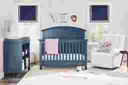 The soothing tranquility of the Cottage Colors convertible crib nestles your bundle of joy in adaptable comfort with a design that is built to change with the different stages in each child's development. Crafted of wood solids in navy finish, this crib features reinforced corner blocks and a three-height link spring. With the removal of the front rail, this crib transforms into a daybed. The crib can also be converted to a toddler bed and a full-size platform bed with the purchase of additional conversion rails. Mattress and foundation (if required) sold separately. Toddler conversion rails and full conversion rails with slats sold separately. Customer assembly required. Crib mattress and linens/accessories not included.