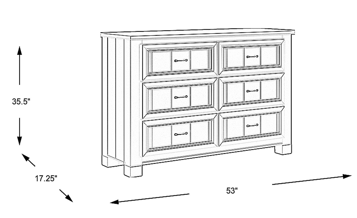 An attractive bedroom essential, the Cottage Colors dresser provides six generous drawers of storage. The piece is crafted of poplar solids with a bold navy finish. Each drawer has paneling details and brushed nickel finished hardware with kenlin drawer guides for durability. Drawer pulls are rounded, and thanks to anti-tipping certification and curved edges, this dresser has added safety.