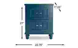 The Cottage Colors nightstand is ideal for keeping a lamp, clock and other bedside necessities close by. Showcasing a bold navy finish, its two roomy drawers feature beautiful paneling and brushed nickel finished hardware. Bun feet add a stylish finishing touch.