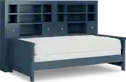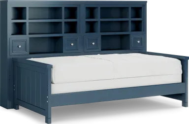 Make the most of the space in your child's bedroom with the Cottage Colors bookcase daybed. Featuring double bookshelves with open cubbies and drawers, there is plenty of space to store books or display collectibles. Showcasing a bold blue finish, the bed is detailed with beautiful paneling details for a timeless look. A dual height rail setting offers an adjustable height, growing with your child. Store an extra mattress in style with the matching trundle option, sold separately. Mattress and foundation (if required) sold separately.