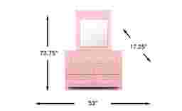 Offering six roomy drawers of storage, the Cottage Colors dresser is quality constructed of poplar solids with a pink finish. Each drawer has paneling detail and brushed nickel finished hardware. Drawer pulls are rounded and edges are curved for added safety. The matching mirror is designed to affix to the dresser.