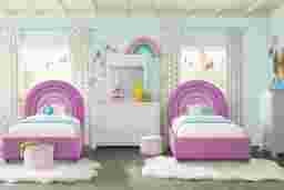 Kids Cottage Colors White Bedroom with Rainbow Joy Pink Twin Beds