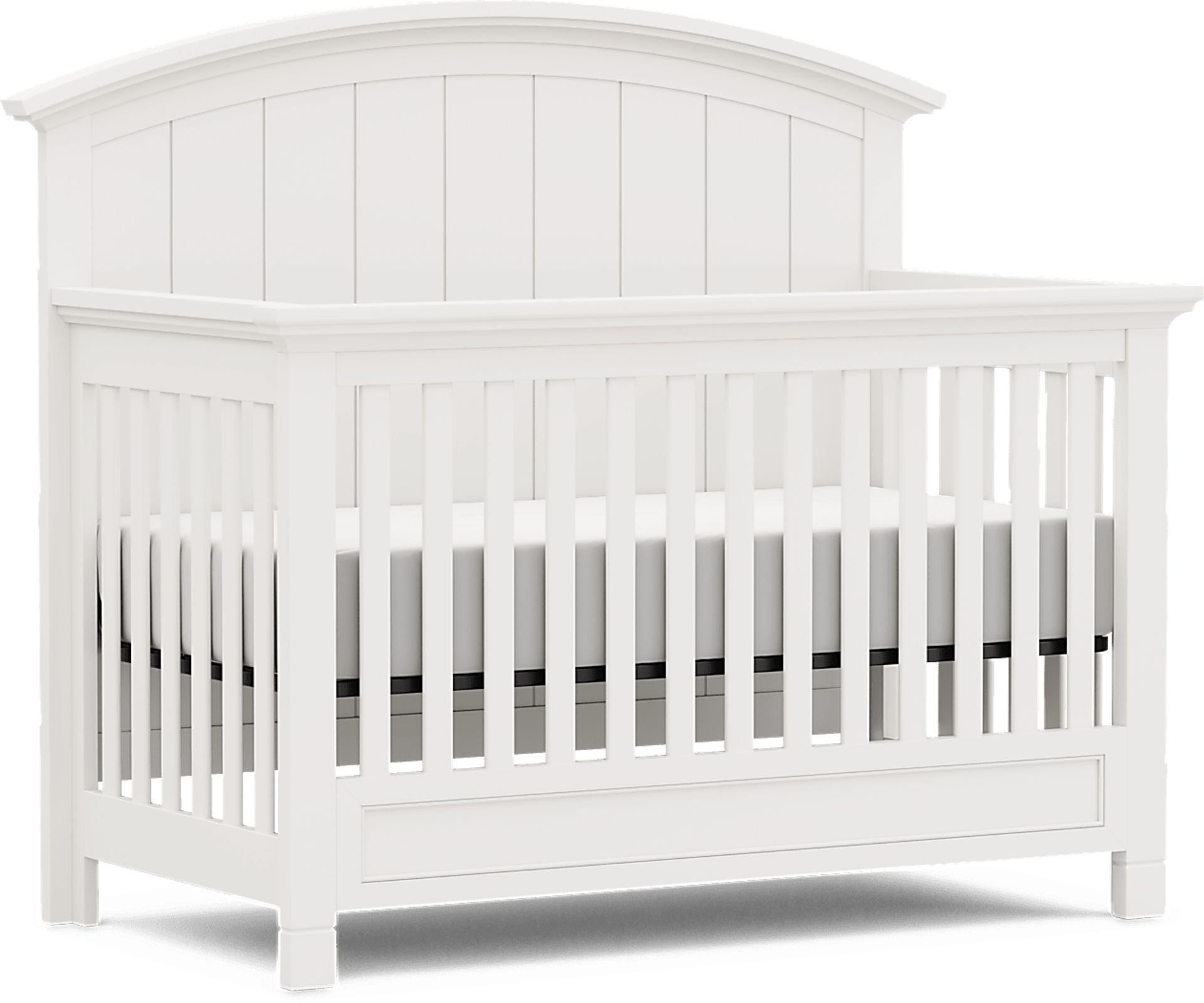 The soothing tranquility of the Cottage Colors convertible crib nestles your bundle of joy in adaptable comfort with a design that is built to change with the different stages in each child's development. Finished in soothing white, this crib features reinforced corner blocks and a three-height link spring. With the removal of the front rail, this crib transforms into a daybed. The crib can also be converted to a toddler bed and a full-size platform bed with the purchase of additional conversion rails. Mattress and foundation (if required) sold separately. Toddler conversion rails and full conversion rails with slats sold separately. Customer assembly required. Crib mattress and linens/accessories not included.
