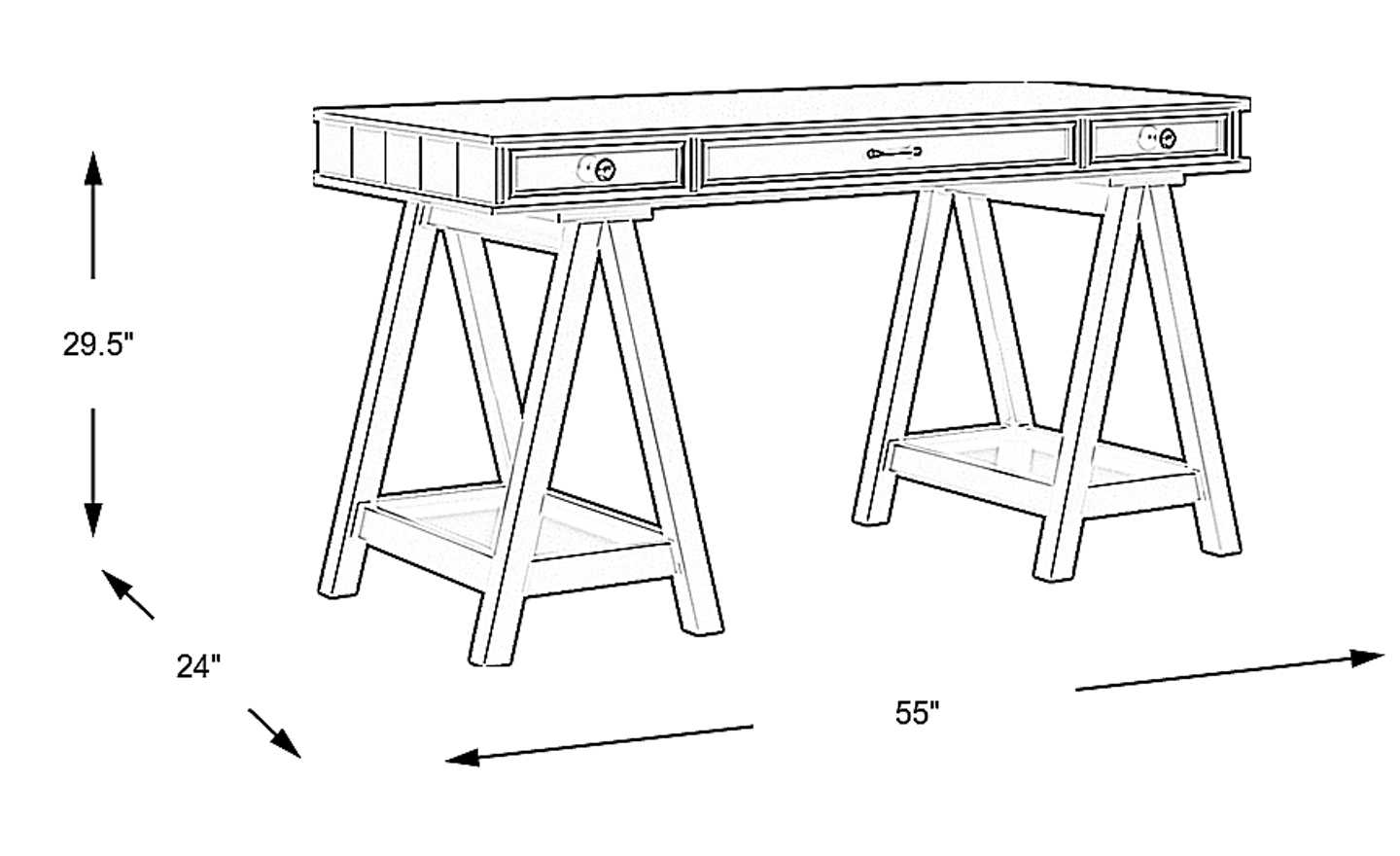 The Cottage Colors desk is a contemporary take on a classic style. Supported by sawhorse style "legs," the desk has three drawers for supplies. Brushed nickel finished hardware complements the white finish.