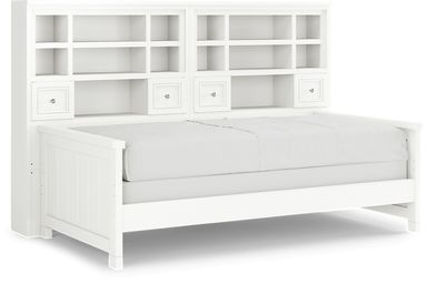 Make the most of the space in your child's bedroom with the Cottage Colors bookcase bed. The headboard features handy space for books or displaying collectibles. Showcasing a lovely white finish, the bed is detailed with beautiful paneling. Store an extra mattress in style with the matching trundle option, sold separately. Mattress and foundation (if required) sold separately.