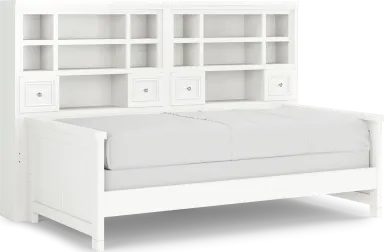 Make the most of the space in your child's bedroom with the Cottage Colors bookcase bed. The headboard features handy space for books or displaying collectibles. Showcasing a lovely white finish, the bed is detailed with beautiful paneling. Store an extra mattress in style with the matching trundle option, sold separately. Mattress and foundation (if required) sold separately.