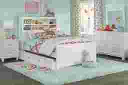 Underbed storage trundle not included. The Cottage Colors collection offers a great look and fantastic value. For storage, the bed's headboard offers a handy shelf for books or collectibles. The fresh white finish makes it easy and fun to add a colorful nightstand or chest (available, but sold separately) in cool accent colors. Pretty paneling detail and brushed nickel finished hardware add to the charm and ensure the room will remain appealing as your child grows. To purchase the room as pictured add the trundle option above. Mattress and foundation (if required) sold separately. Bed shown is twin size.