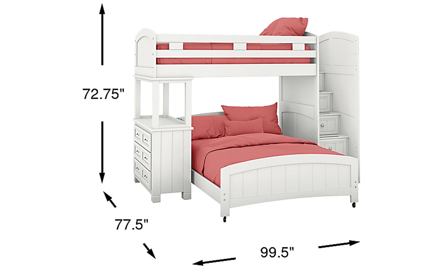 Absolutely. This unit is specifically engineered for high-density functionality, combining a twin bed, a full bed, a chest of drawers, and step-storage within a footprint of 99.5"l x 77.5"w. By consolidating these pieces into a single vertical unit, you free up significant floor space for play or additional furniture, making it an ideal choice for compact suburban homes or city apartments where maximizing square footage is a priority.