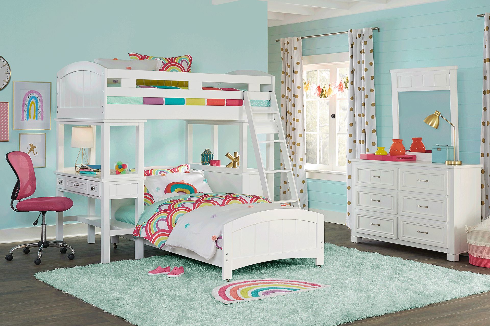 Kids Cottage Colors White Twin Loft Bunk With Desk And Dresser