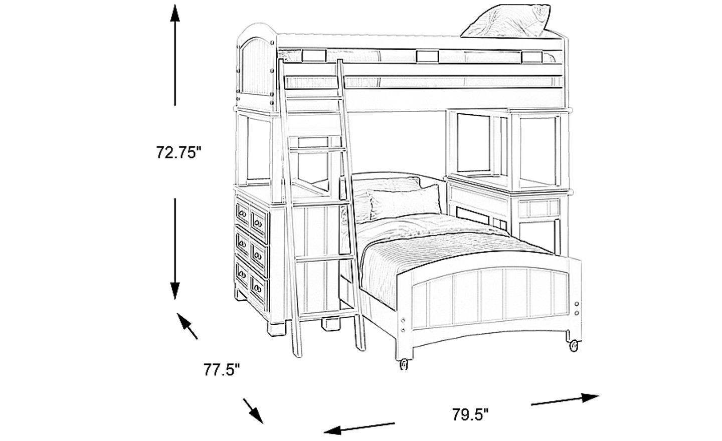 The Cottage Colors twin/full loft bunk offers a great look and fantastic value. This classic bunk keeps it simple with a traditional design that will never go out of style while a built in desk and dresser ensure no space is wasted. The chic white finish, pretty paneling detail and brushed nickel finished hardware add to the charm and ensure the room will remain appealing as your child grows. Mattresses and foundations (if required) sold separately. Bunkie Boards required for mattress support.
