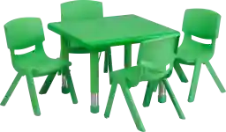 Shape your classroom into a collaborative learning space by placing these square table sets around the room that provide a space for a child at each end. Designed for safety around rambunctious toddlers, the table has rounded corners and the plastic stack chairs are constructed of metal-free materials. The Crayo activity table set serves as a play table or kids dining table in the classroom or home. Built for comfort, the shell chairs are a one-piece contoured designed to promote proper posture. Not only are these chairs designed properly, but they are lightweight so kids can feel independent by moving the chairs themselves. With this play activity table set setup in the playroom you're always prepared for play dates and birthday parties. Low in maintenance, these toddler chairs and activity table wipe clean with ease after snacks. This play activity table set will be your all purpose set for meal time, snacks, crafts and learning activities. Customer assembly is required.