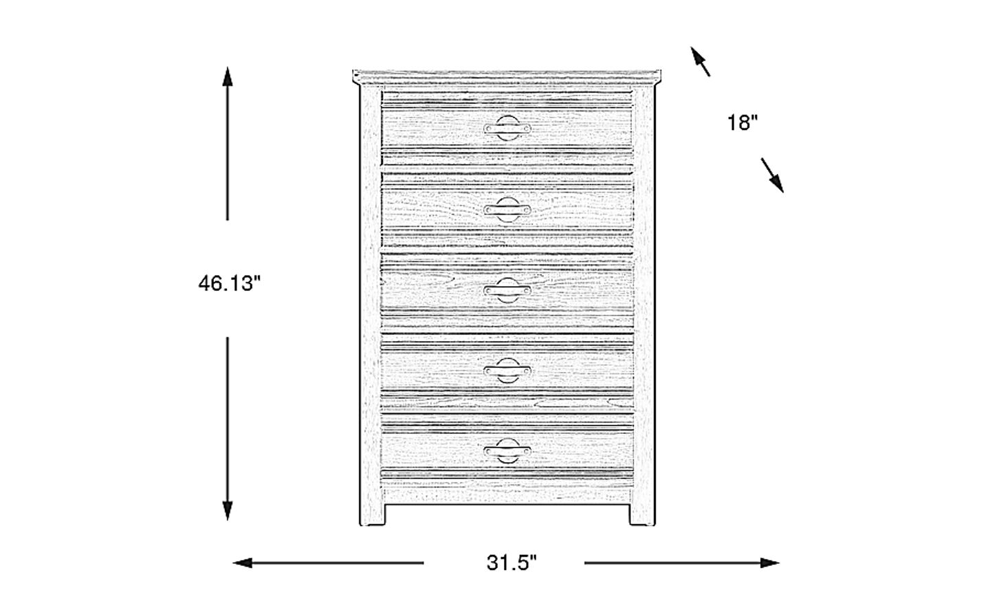 This chest is engineered for durability, featuring tongue and groove panels paired with pine veneers for a sturdy, reliable build. The five drawers are crafted with French dovetail fronts, a time-tested joinery technique that increases structural integrity and resistance to wear. For ease of use, each drawer is equipped with bottom-mounted metal glides to ensure a smooth, consistent opening and closing experience.