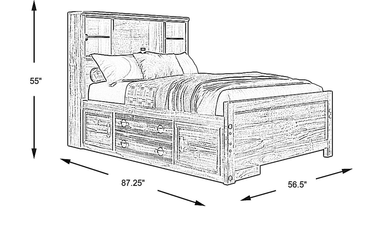 With a timeless look and classic construction, the Creekside 2.0 bookcase bed is a wonderful choice for saving space in your child's room. Crafted with pine veneers in a charcoal finish, this full-size bed features a bookcase headboard with shelves that have integrated wire management to help keep your child's favorite things within arm's reach. Additionally, a storage side rail with two doors and a pair of drawers provides bedside space to store comics, books and more. Mattress and foundation (if required) sold separately.