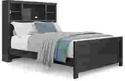 With a timeless look and classic construction, the Creekside 2.0 bookcase bed is a wonderful choice for saving space in your child's room. Crafted with pine veneers in a charcoal finish, this full-size bed features a bookcase headboard with shelves that have integrated wire management to help keep your child's favorite things within arm's reach. Mattress and foundation (if required) sold separately.
