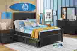 With a timeless look and classic construction, the Creekside 2.0 bookcase bed is a wonderful choice for saving space in your child's room. Crafted of pine solids and veneers in a charcoal finish, this full-size bed features a bookcase headboard with shelves that have integrated wire management to help keep your child's favorite things within arm's reach. Mattress and foundation (if required) sold separately.