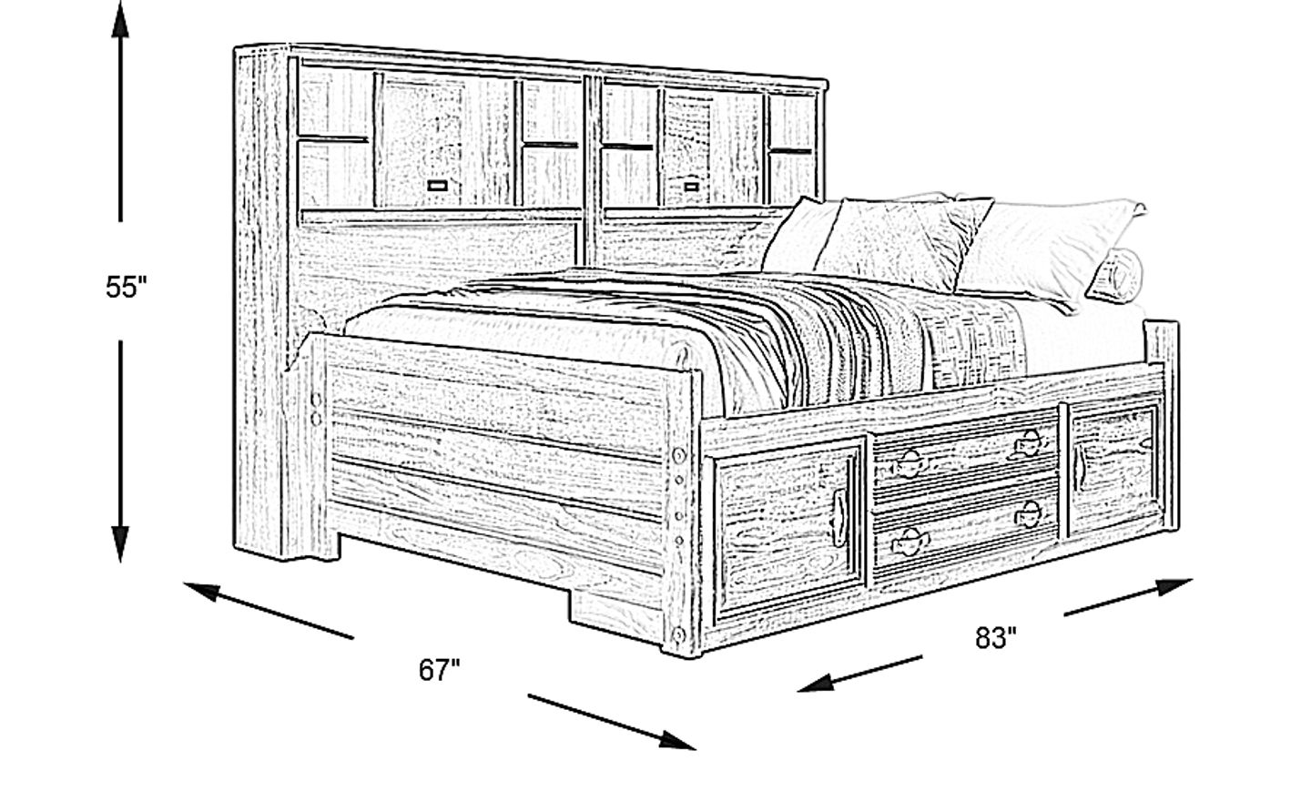 With a timeless look and classic construction, the Creekside 2.0 bookcase wall bed is a wonderful choice for saving space in your child's room. Crafted with pine veneers in a charcoal finish, this full-size wall bed features a bookcase headboard with shelves that have integrated wire management to help keep your child's favorite things within arm's reach. Additionally, a storage side rail with two doors and a pair of drawers provides bedside space to store comics, books and more. Mattress and foundation (if required) sold separately.