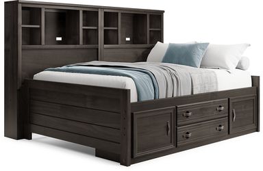 • Kids Creekside 2.0 Charcoal Full Bookcase Wall Bed with Storage Side Rail