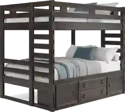 Get a space saving solution without sparing on timeless style appeal when you choose the Creekside 2.0 bunk bed for your child's room. Crafted with pine veneers in a charcoal finish, this full/full bunk bed features built-in ladders on each side for easy-peasy ups and downs between the top and bottom bunks. A storage side rail with two doors and a pair of drawers provides bedside space for your child to store comics, books and more of their favorite things. Mattresses and foundations sold separately. This product requires a bunkie board (sold separately)