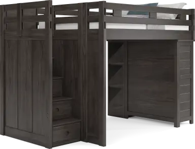 Get a space saving solution without sparing on timeless style appeal when you choose the Creekside 2.0 loft bed for your child's room. Crafted with pine veneers in charcoal finish, this full-size bed sits atop a loft that features built-in ladders on each side of the frame for easy-peasy ups and downs to and from bed. Just beneath the loft bed, there's ample space for play, pretend or coordinating furniture. Mattress and foundation sold separately. This product requires a bunkie board (sold separately).