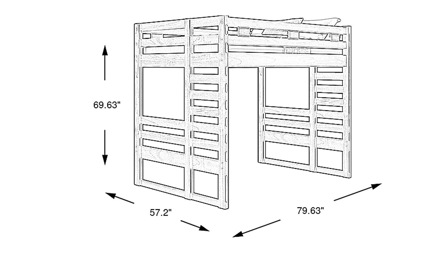 When installing a loft bed, we recommend having at least 33 to 36 inches of clearance between the top of the mattress and your ceiling to allow your child to sit up comfortably. With this bed's height of approximately 69.63 inches, it is best suited for rooms with standard 8-foot or 9-foot ceilings to ensure a safe and airy feel for the sleeper.