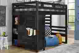 Get a space saving solution without sparing on timeless style appeal when you choose the Creekside 2.0 loft bed for your child's room. Crafted of pine solids and veneers in charcoal finish, this full bed sits atop a loft that features a storage loft chest on one side of the frame with a ladder built into the opposite side for easy-peasy ups and downs to and from bed. Just beneath the loft, a bookcase affixed to the underside of the frame offers perfect shelving for comics, magazines, books and more. Mattress and foundation sold separately. This product requires a bunkie board (sold separately).