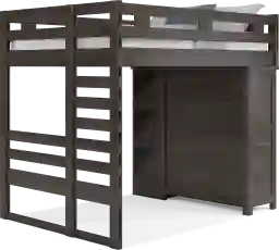Get a space saving solution without sparing on timeless style appeal when you choose the Creekside 2.0 loft bed for your child's room. Crafted with pine veneers in charcoal finish, this full bed sits atop a loft that features a storage loft chest on one side of the frame with a ladder built into the opposite side for easy-peasy ups and downs to and from bed. Just beneath the loft, a bookcase affixed to the underside of the frame offers perfect shelving for comics, magazines, books and more. Mattress and foundation sold separately. This product requires a bunkie board (sold separately).