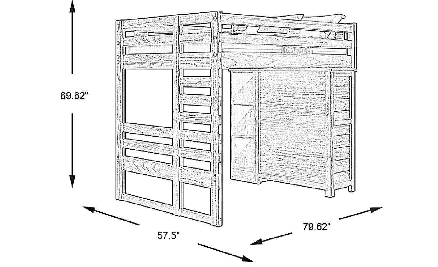 Get a space saving solution without sparing on timeless style appeal when you choose the Creekside 2.0 loft bed for your child's room. Crafted with pine veneers in charcoal finish, this full bed sits atop a loft that features a storage loft chest on one side of the frame with a ladder built into the opposite side for easy-peasy ups and downs to and from bed. Just beneath the loft, a bookcase affixed to the underside of the frame offers perfect shelving for comics, magazines, books and more. Mattress and foundation sold separately. This product requires a bunkie board (sold separately).