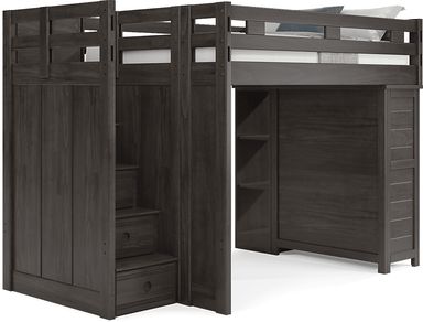 Kids Creekside 2.0 Charcoal Full Step Loft With Loft Chest And Bookcase