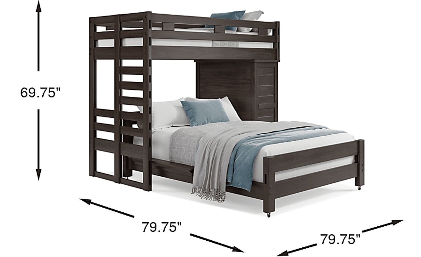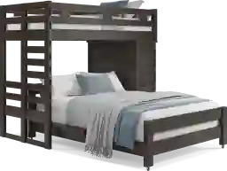 Get a space saving solution without sparing on timeless style appeal when you choose the Creekside 2.0 loft bed for your child's room. Crafted with pine veneers in charcoal finish, this bed sits atop a frame that features a storage loft chest on one side with a ladder built into the opposite end of the frame for easy-peasy ups and downs to and from bed. Just beneath the frame, the full-size caster bed offers another place to sleep. Mattresses and foundations sold separately. This product requires a bunkie board (sold separately).