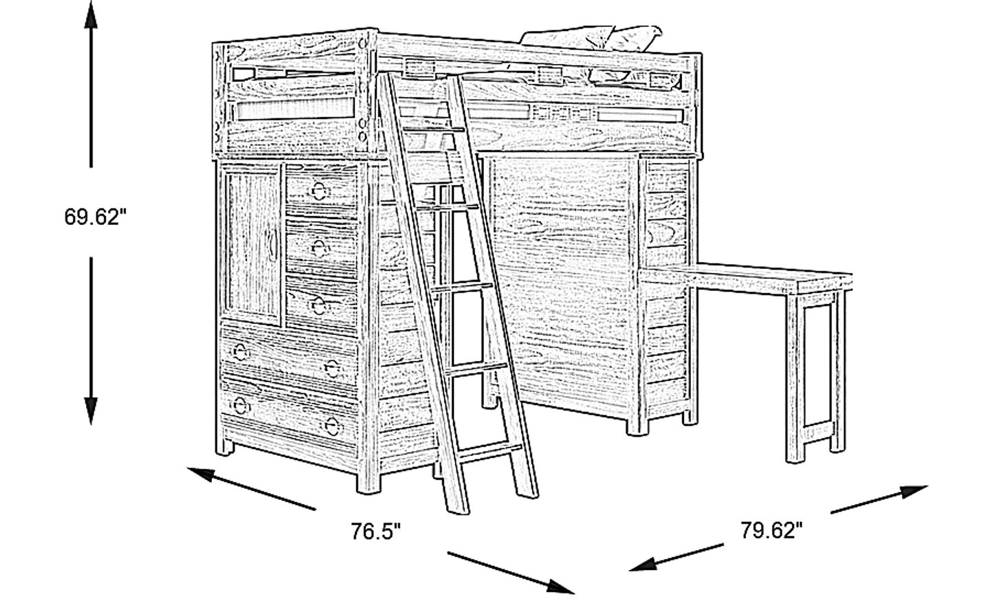 Get a space saving solution without sparing on timeless style appeal when you choose the Creekside 2.0 loft bed for your child's room. Crafted of pine solids and veneers in charcoal finish, this twin-size bed sits atop a frame that features two storage chests equipped with ample space for clothes, accessories and even more of your child's favorite things. Additionally, an accompanying desk attachment affixes to the frame for an extra study surface while a ladder provides easy-peasy ups and downs to and from the loft bed on top. Just beneath the frame there's ample space for play, pretend or coordinating furniture. Mattress and foundation sold separately. This product requires a bunkie board (sold separately).