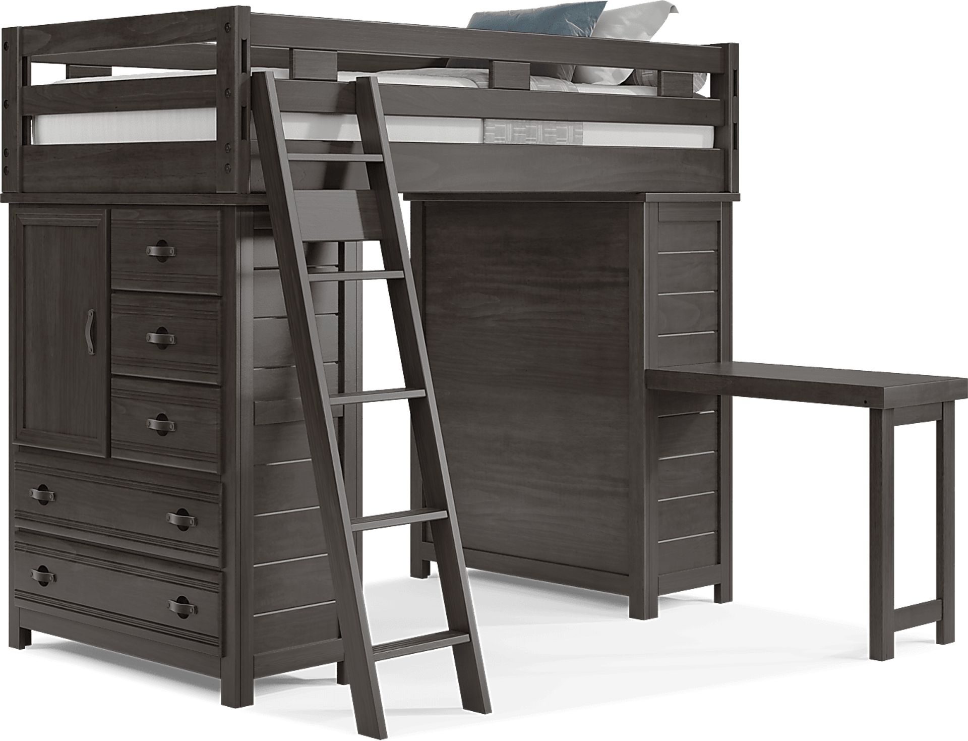 Kids Creekside 2.0 Charcoal Twin Loft With 2 Loft Chests And Desk Attachment
