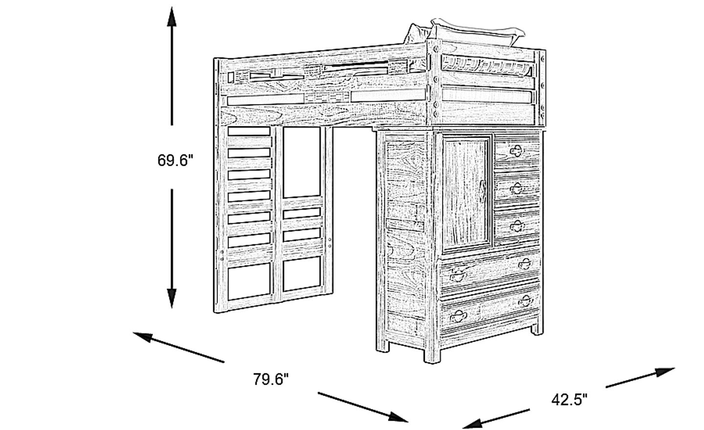 Kids Creekside 2.0 Charcoal Twin Loft With Chest