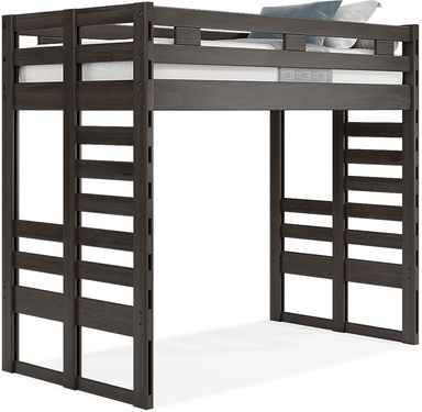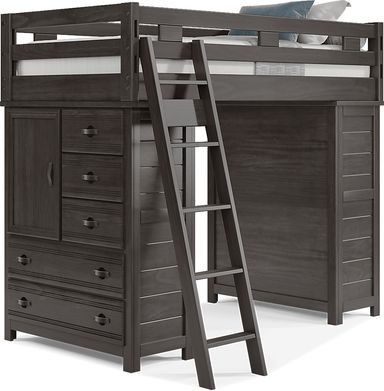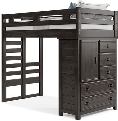 Get a space saving solution without sparing on timeless style appeal when you choose the Creekside 2.0 loft bed for your child's room. Crafted with pine veneers in a charcoal finish, this bed sits atop a frame that features a storage loft chest on one side and a built-in ladder on the other. Mattress and foundation (if required) sold separately.