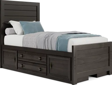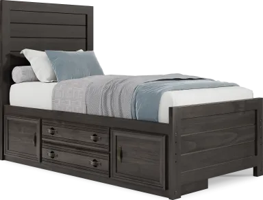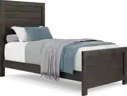 With its timeless look, the Creekside 2.0 panel bed is an excellent choice for your child's room. Crafted with traditionally built mortise and tenon frames with tongue and groove panels and pine veneers in a charcoal finish, this twin-size bed features a panel design on the head and footboards for eye catching appeal. Mattress and foundation (if required) sold separately.