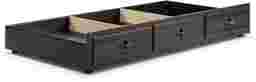 Keep hidden storage close by with the help of the Creekside 2.0 trundle. Two removable dividers provide enough space for clothes, books, games and more. Remove the dividers and store a twin size mattress. Crafted with pine veneers in a charcoal finish, this twin-size storage trundle features the appearance of front facing drawers with metal hardware accents.