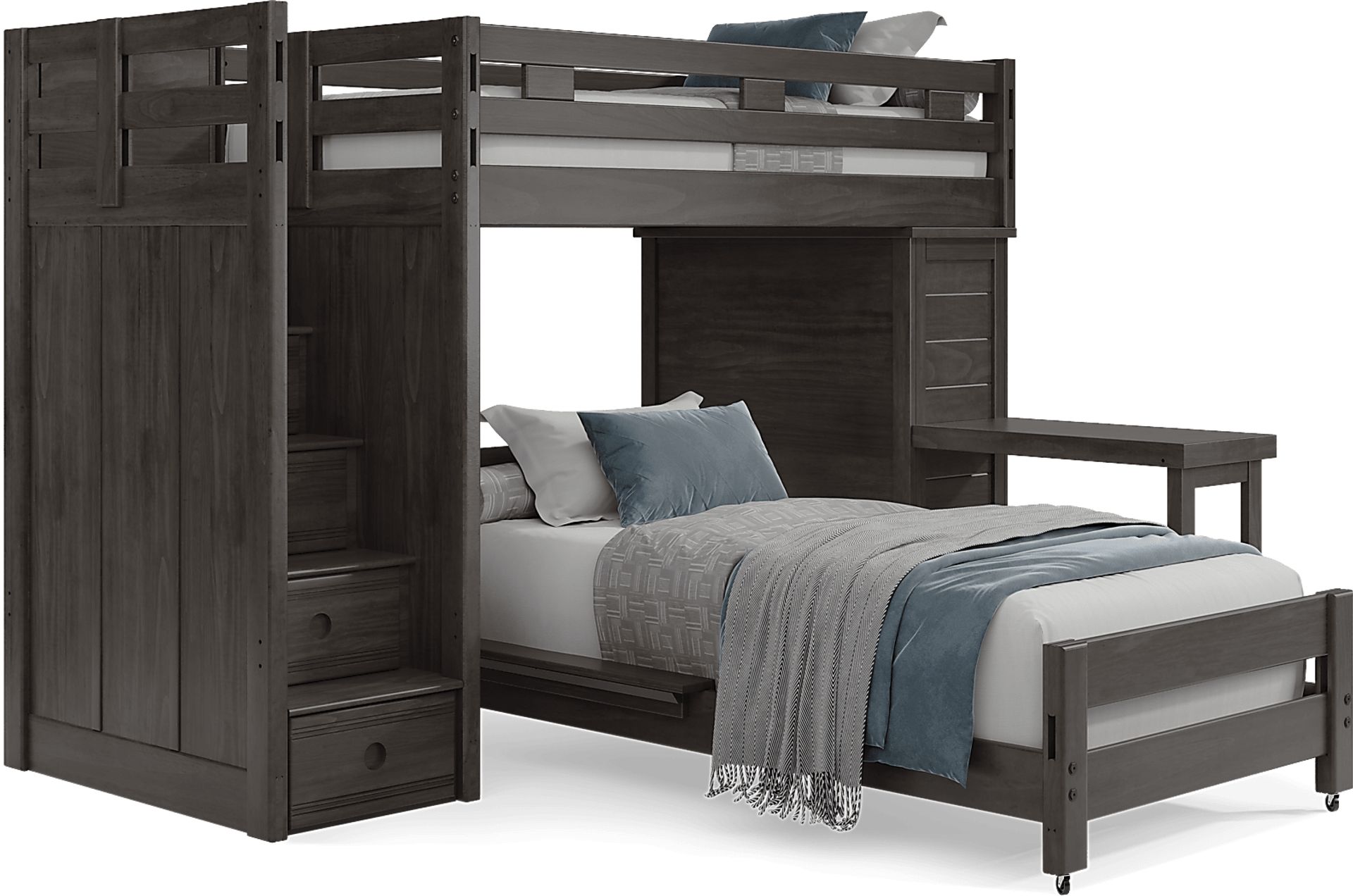 Kids Creekside 2.0 Charcoal Twin/twin Step Loft With Loft Chest And Desk Attachment
