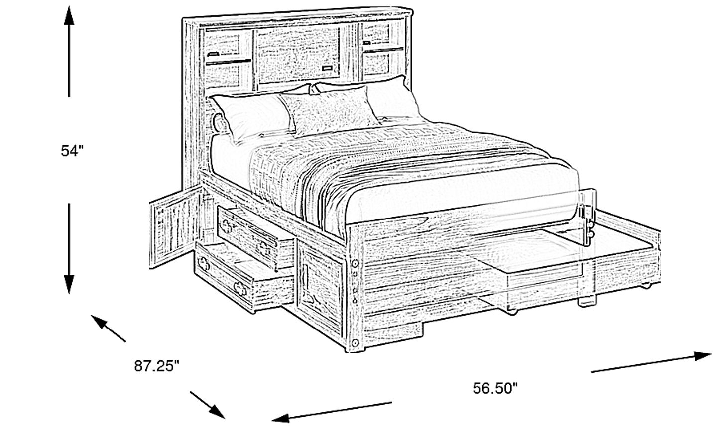 With a timeless look and classic construction, the Creekside 2.0 bookcase bed is a wonderful choice for saving space in your child's room. Crafted of pine solids and veneers in a charcoal finish, this full-size bed features a bookcase headboard with shelves that have integrated wire management to help keep your child's favorite things within arm's reach. Additionally, a storage side rail with two doors and a pair of drawers provides bedside space to store comics, books and more. The twin storage trundle has two removable dividers with space for clothes, books, games and more. Remove the dividers and store a twin size mattress. Mattresses and foundations (if required) sold separately. This product requires a bunkie board (sold separately).