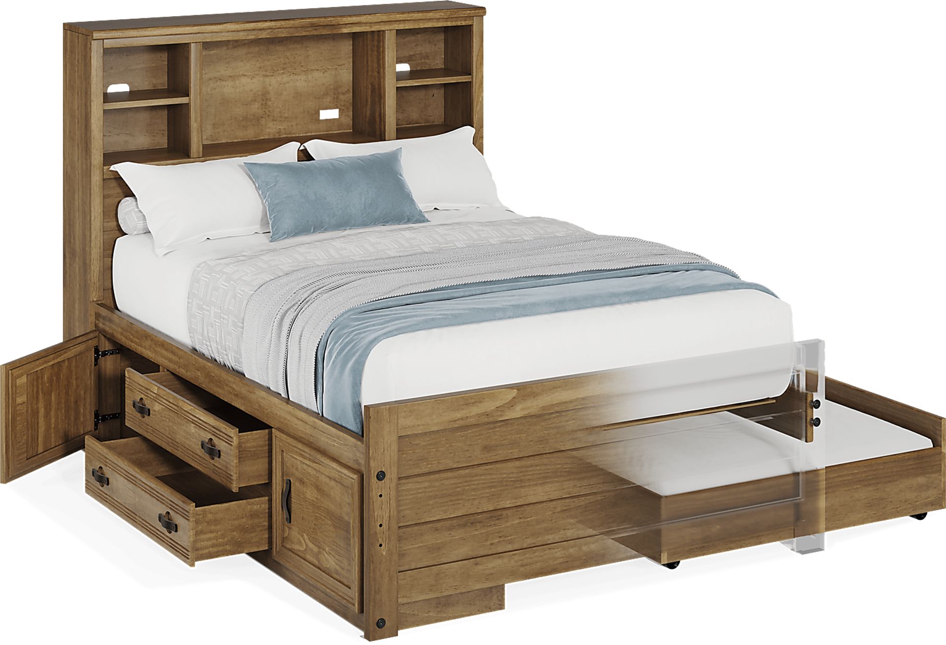 Kids Creekside 2.0 Chestnut 4 Pc Full Bookcase Bed With Storage Side Rail And Trundle