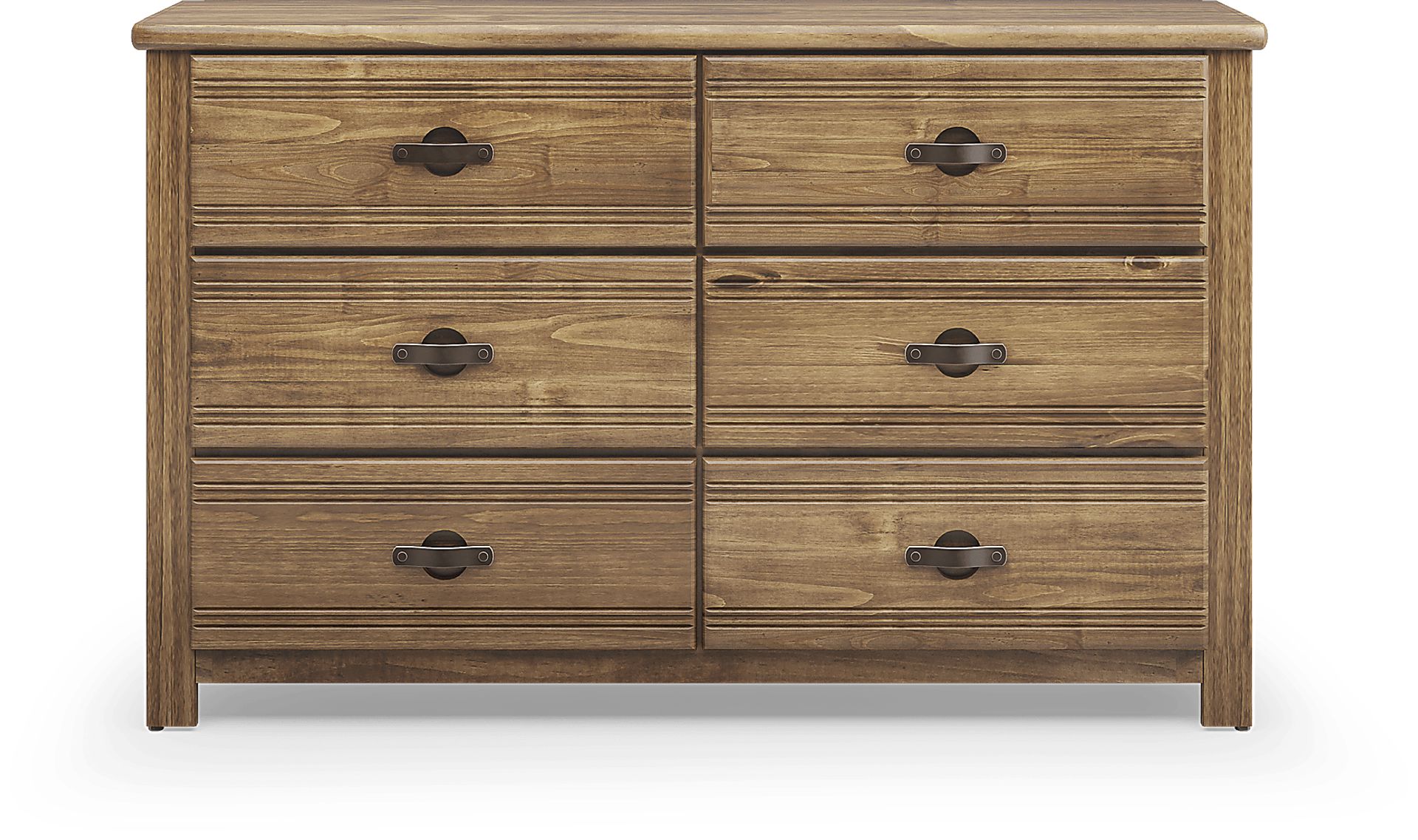 With its timeless look and plenty of space to store their belongings, the Creekside 2.0 dresser is the perfect piece for your child's bedroom. Crafted of tongue and groove panels with pine veneers in a warm chestnut finish, the dresser also features metal strap drawer pulls for a hint of industrial-inspired flair. Internally, the six-drawer dresser is configured with French dovetail fronts and bottom mounted metal drawer glides.