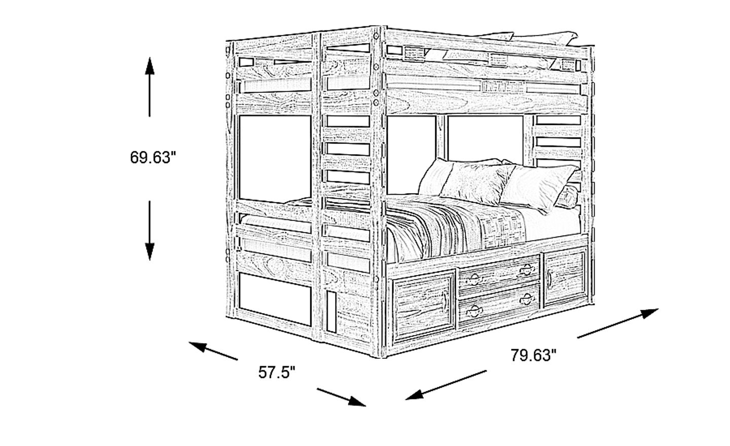 Get a space saving solution without sparing on timeless style appeal when you choose the Creekside 2.0 bunk bed for your child's room. Crafted with pine veneers in a chestnut finish, this full/full bunk bed features built-in ladders on each side for easy-peasy ups and downs between the top and bottom bunks. A storage side rail with two doors and a pair of drawers provides bedside space for your child to store comics, books and more of their favorite things. Mattresses and foundations sold separately. This product requires a bunkie board (sold separately).