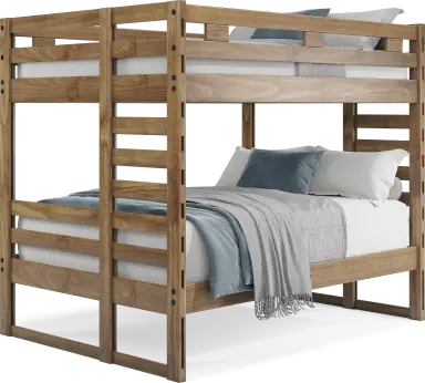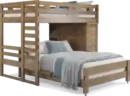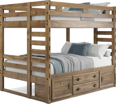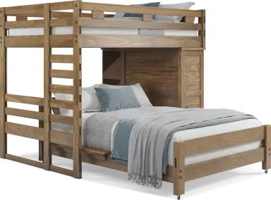 Get a space saving solution without sparing on timeless style appeal when you choose the Creekside 2.0 loft bed for your child's room. Crafted with pine veneers in a warm chestnut finish, this full loft bed sits atop a frame that features a storage loft chest on one side with a ladder built into the opposite side for easy-peasy ups and downs to and from bed. Just beneath the loft, a bookcase affixed to the underside of the frame offers perfect shelving for comics, magazines, books and more, while a full-size caster bed provides an additional place for sleep. Mattresses and foundations sold separately. This product requires a bunkie board (sold separately).