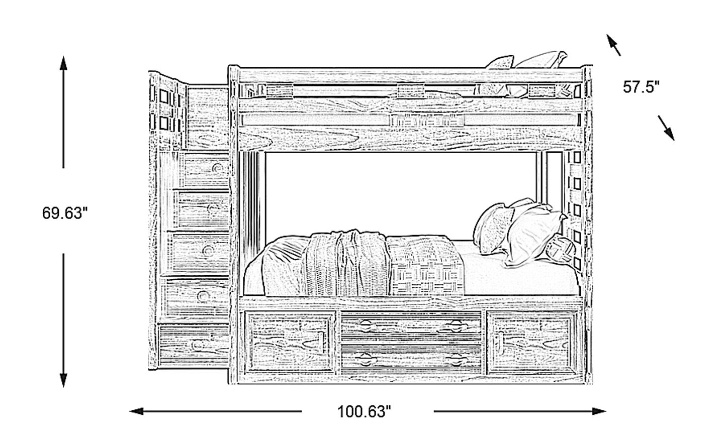 Get a space saving solution without sparing on timeless style appeal when you choose the Creekside 2.0 bunk bed for your child's room. Crafted with pine veneers in a chestnut finish, this full/full step bunk bed features a ladder built into the side of the frame while the other end is configured with five easy-peasy steps to take instead. Additionally, four of the steps have drawers to help store away your child's favorite things, while a storage side rail provides even more bedside storage with two doors and a pair of drawers. Mattresses and foundations sold separately. This product requires a bunkie board (sold separately).
