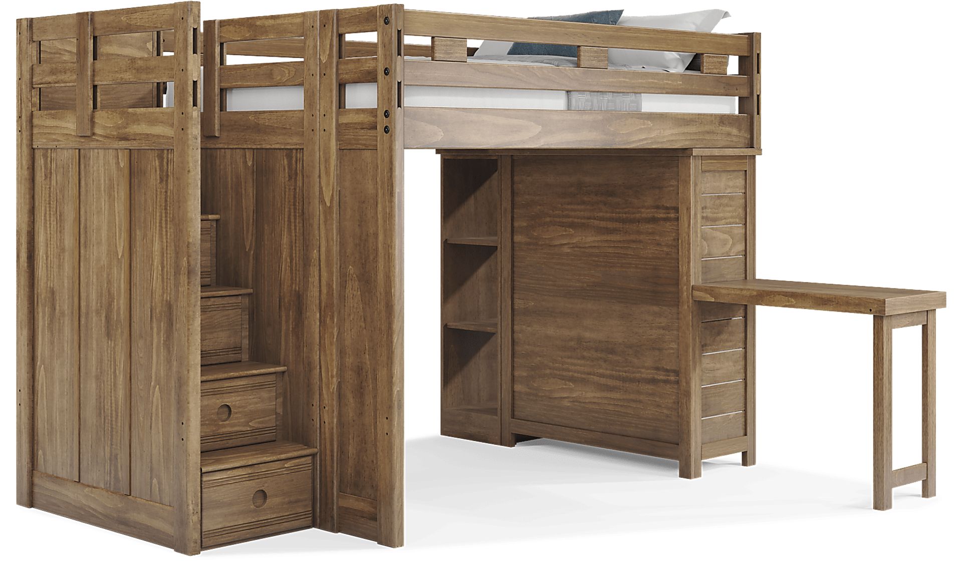 Kids Creekside 2.0 Chestnut Full Step Loft With Loft Chest, Bookcase And Desk Attachment