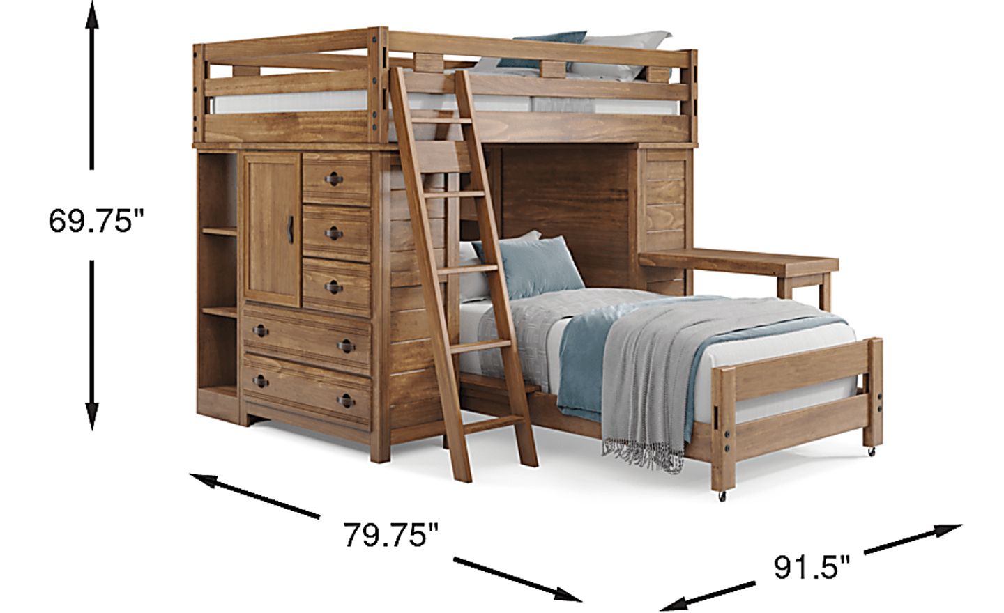 Get a space saving solution without sparing on timeless style appeal when you choose the Creekside 2.0 loft bed for your child's room. Crafted of pine solids and veneers in a warm chestnut finish, this twin-size bed sits atop a frame that features two storage chests equipped with ample space for clothes, accessories and even more of your child's favorite things. A pair of bookcases affixed into the frame of the loft offer perfect shelving for books, comics, magazines and more while an accompanying desk attachment hosts space for studying and reading. A ladder provides easy-peasy ups and downs to and from the bed on top. Additionally, the twin-size caster bed provides an exceptional place to sleep nestled beneath the loft. Mattresses and foundations sold separately. This product requires a bunkie board (sold separately).