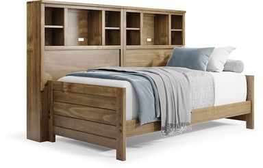 With a timeless look and classic construction, the Creekside 2.0 bookcase bed is a wonderful choice for saving space in your child's room. Crafted with pine veneers in a warm chestnut finish, this twin-size bed features a bookcase headboard with shelves that have integrated wire management to help keep your child's favorite things within arm's reach. Mattress and foundation sold separately. This product requires a bunkie board (sold separately).