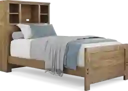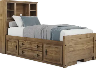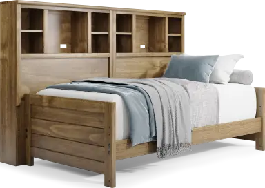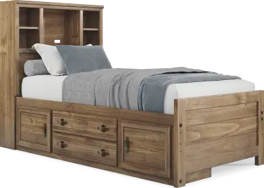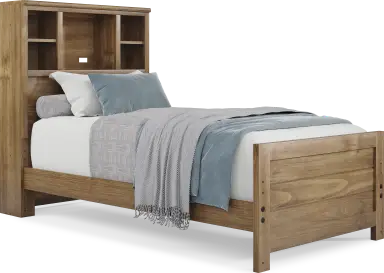 With a timeless look and classic construction, the Creekside 2.0 bookcase bed is a wonderful choice for saving space in your child's room. Crafted with pine veneers in a warm chestnut finish, this twin-size bed features a bookcase headboard with shelves that have integrated wire management to help keep your child's favorite things within arm's reach. Mattress and foundation sold separately. This product requires a bunkie board (sold separately).