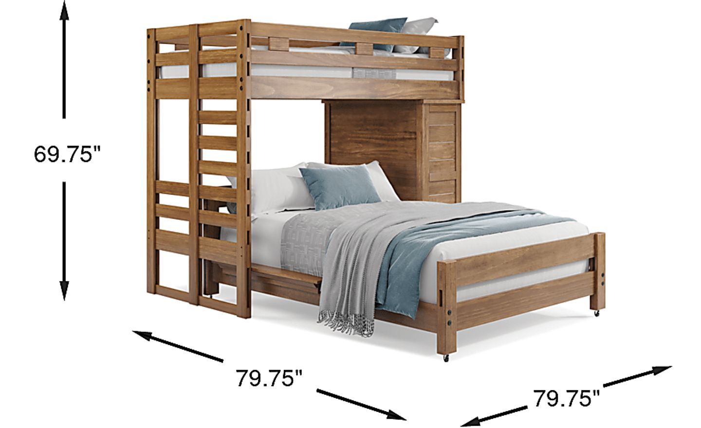 Get a space saving solution without sparing on timeless style appeal when you choose the Creekside 2.0 loft bed for your child's room. Crafted with pine veneers in a warm chestnut finish, this bed sits atop a frame that features a storage loft chest on one side with a ladder built into the opposite end of the frame for easy-peasy ups and downs to and from bed. Just beneath the frame, the full-size caster bed offers another place to sleep. Mattresses and foundations sold separately. This product requires a bunkie board (sold separately).